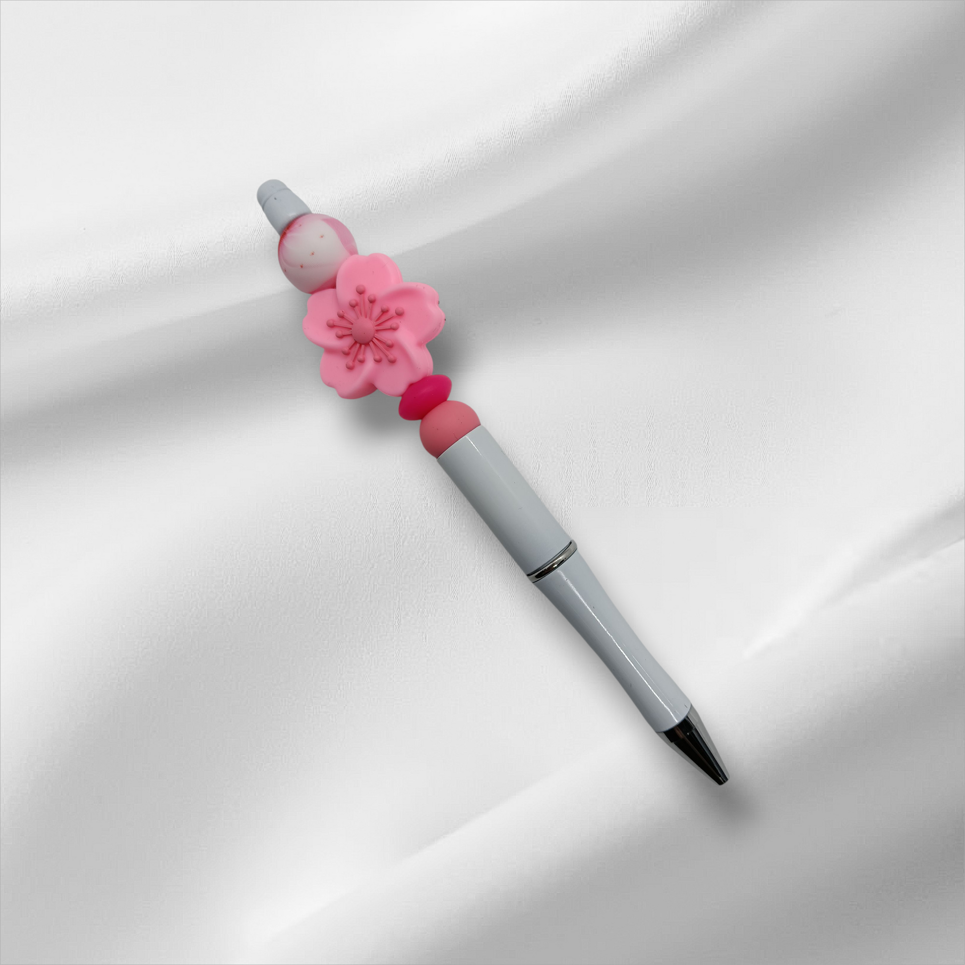 Cherry Blossom Beaded Pen -Light Pink/White