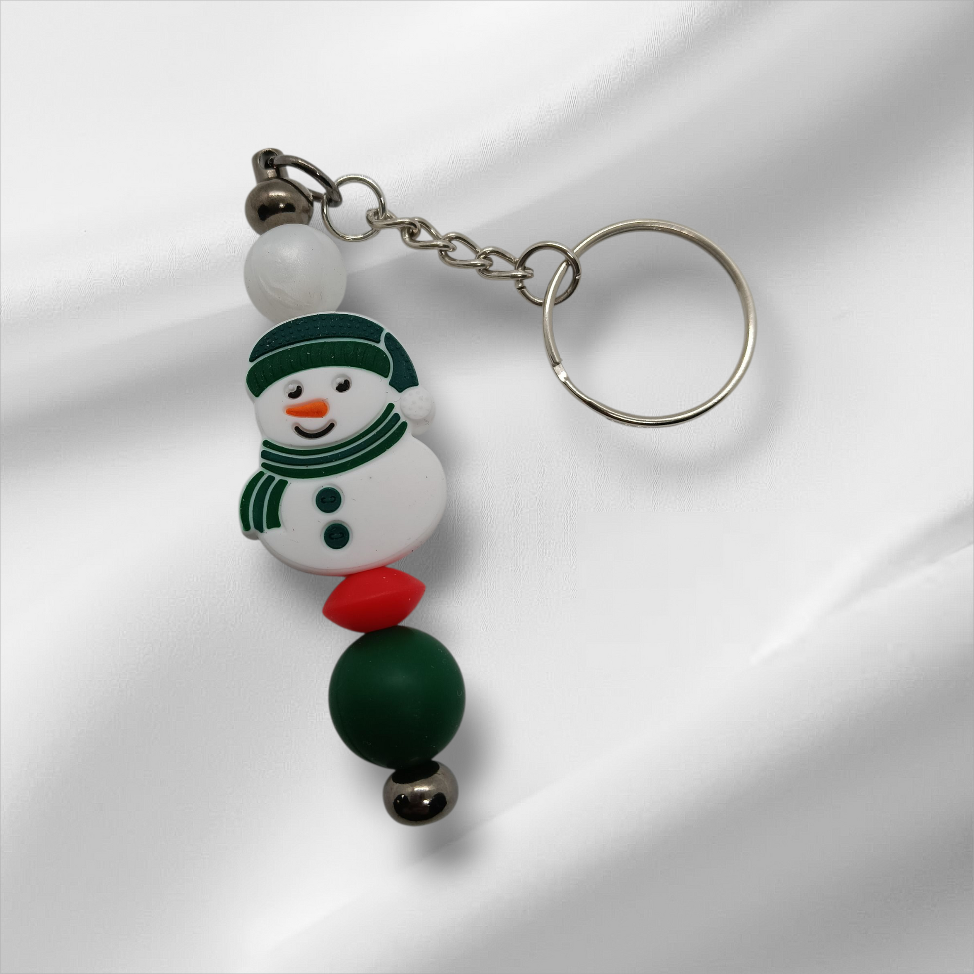 Green Snowman Beaded Keychain
