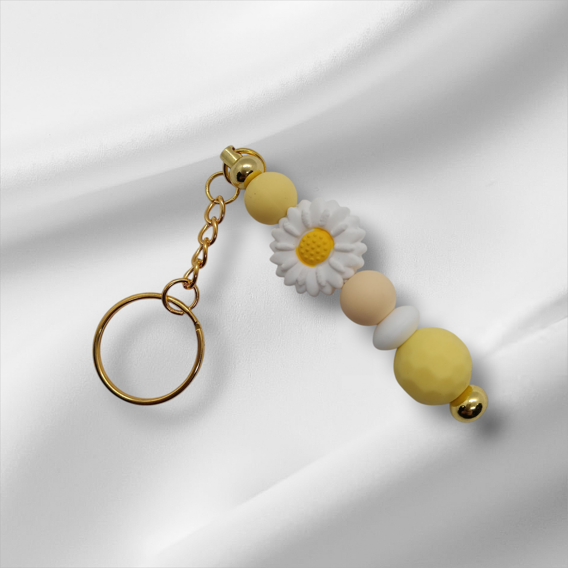 White Flower Beaded Keychain